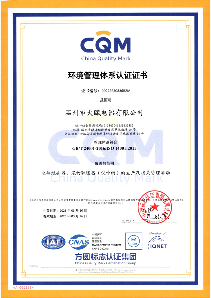 秉承“以人為本,以質(zhì)取勝”的經(jīng)營理念,三十余載櫛風沐雨,踐行“成就客戶、價值為本、誠信務(wù)實、追求卓越”的核心價值觀。大甌公司堅持以產(chǎn)研一體化的經(jīng)營模式與差異化的競爭戰(zhàn)略為基點,持續(xù)推出細分市場上的多種類產(chǎn)品,豐富產(chǎn)品矩陣,滿足消費者多樣化需求,助力新型驅(qū)蚊行業(yè)高速發(fā)展。